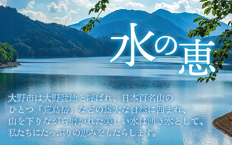 また、大野盆地と呼ばれる日本百名山のひとつ「荒島岳」などの雄大な自然に囲まれ、山を下りながら磨かれた美しい水は湧き水として、わたしたちにたっぷりの恵みをもたらします。