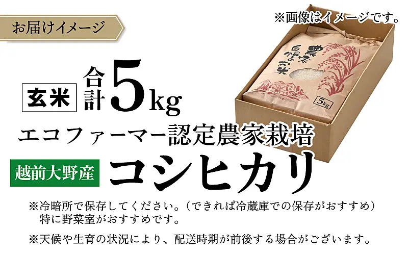 【先行予約】【令和8年産 新米】【有機栽培】越前大野産 エコファーマー認定農家栽培 こしひかり5kg(玄米)[A-001084]
