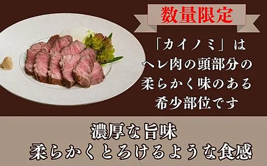 「カイノミ」はヘレ肉の頭部分についている、柔らかく味のある小さな部位です。