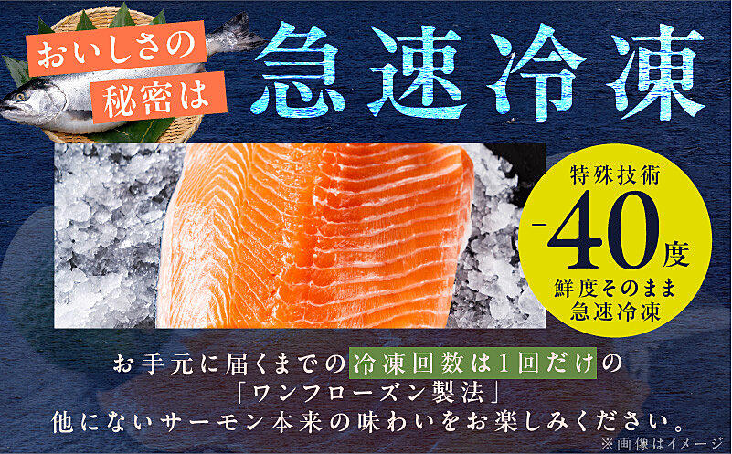 ノルウェーから世界No.1サーモンメーカー(※Kontali Analyse 調べ)の「空飛ぶサーモン」を、生のまま関西空港まで空輸!空港近くの工場ですばやく加工しているので鮮度が抜群です。当社の泉佐野市工場にて、素材のフレッシュ感を損なわないよう特殊技術を活用した「急速冷凍」によって仕上げました。