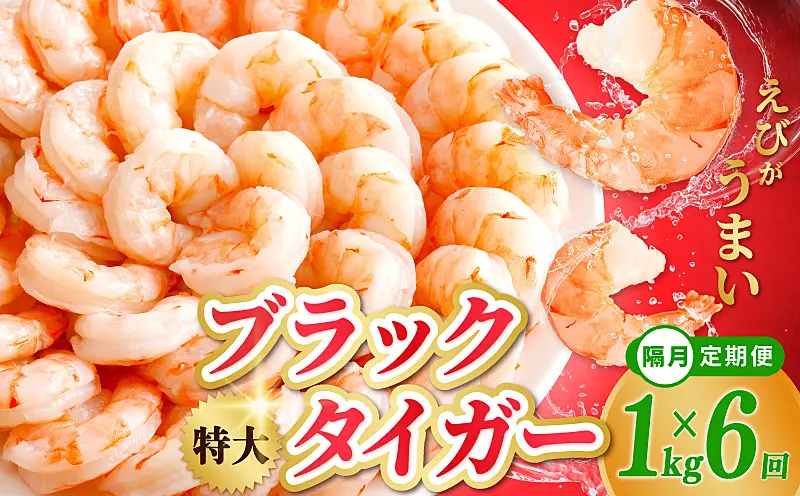 kgp0117 特大ブラックタイガー 定期便 1kg×全6回 むきえび 30-40尾 背ワタなし【2か月に1回配送コース】