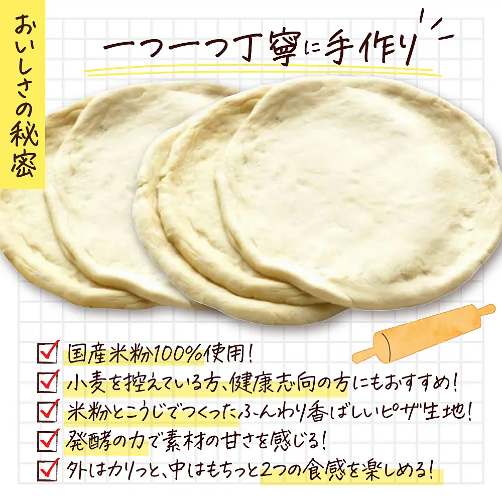 米粉とこうじでつくった、ふんわり香ばしいピザ生地です。