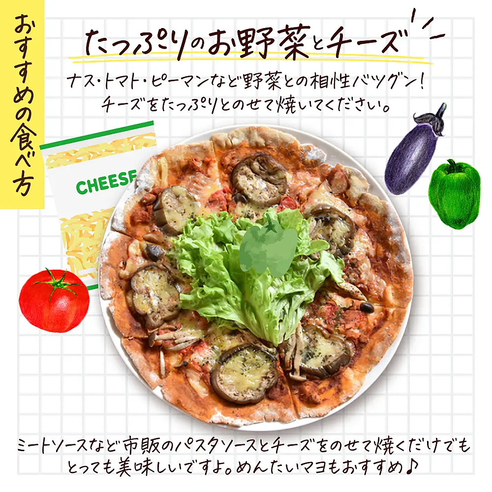 冷凍のままトッピングをして、トースターやオーブンで焼いてお召し上がりください。