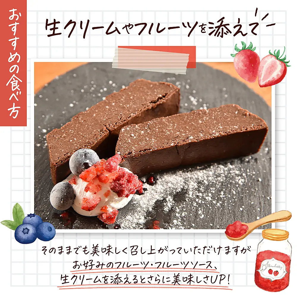 - 絹ごし豆腐、チョコレート、卵、きび砂糖、米粉、はちみつ、ココアパウダー