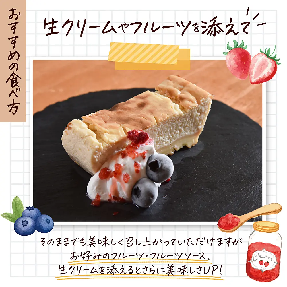 生クリームやフルーツソース・フルーツを添えてお召し上がりください。