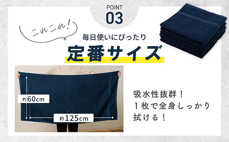 - 濃色カラー バスタオル 8枚(ネイビー&ダークグレー 各4枚)