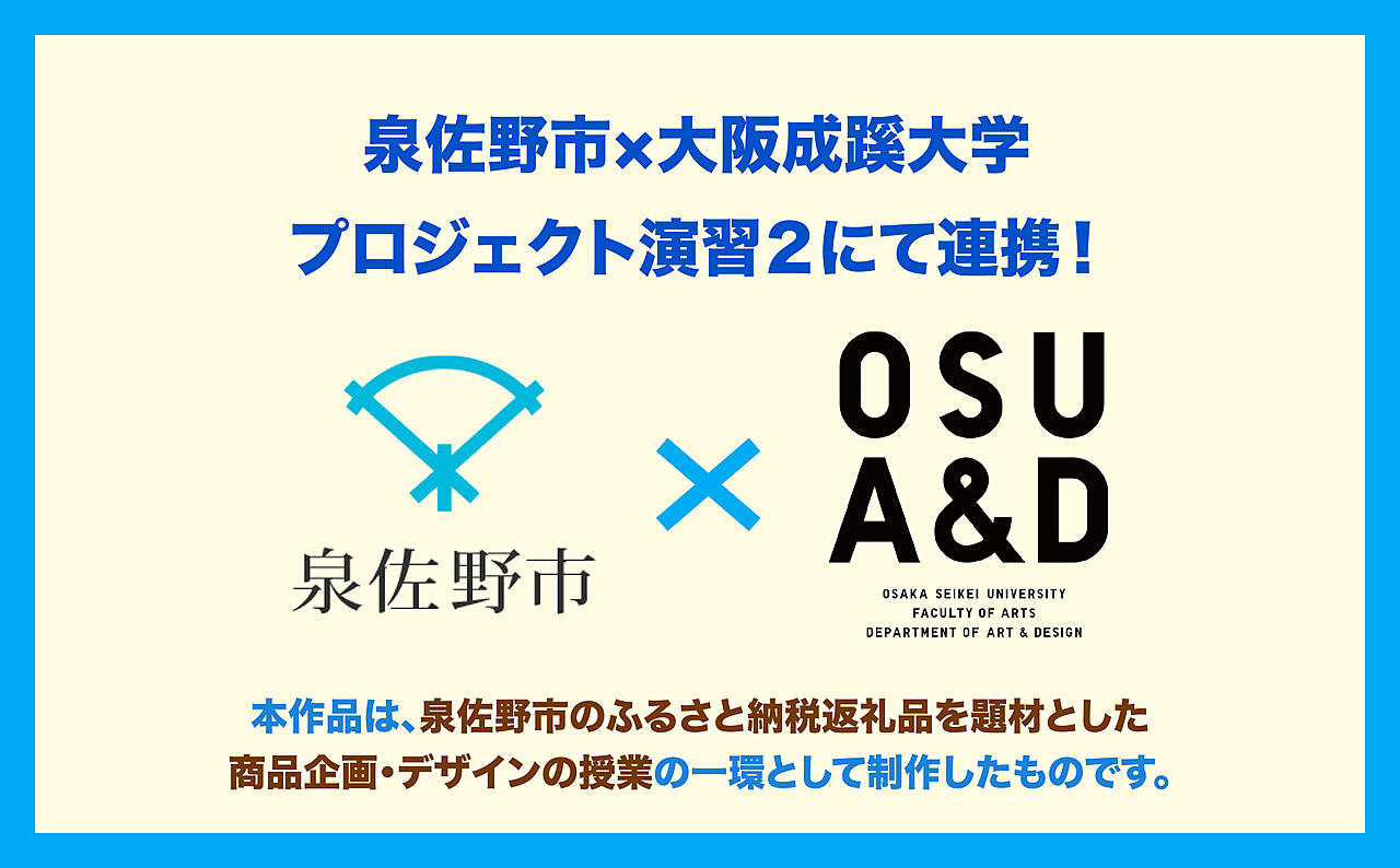 本作品は、泉佐野市のふるさと納税返礼品を題材とした商品企画・デザインの授業の一環として制作されました。