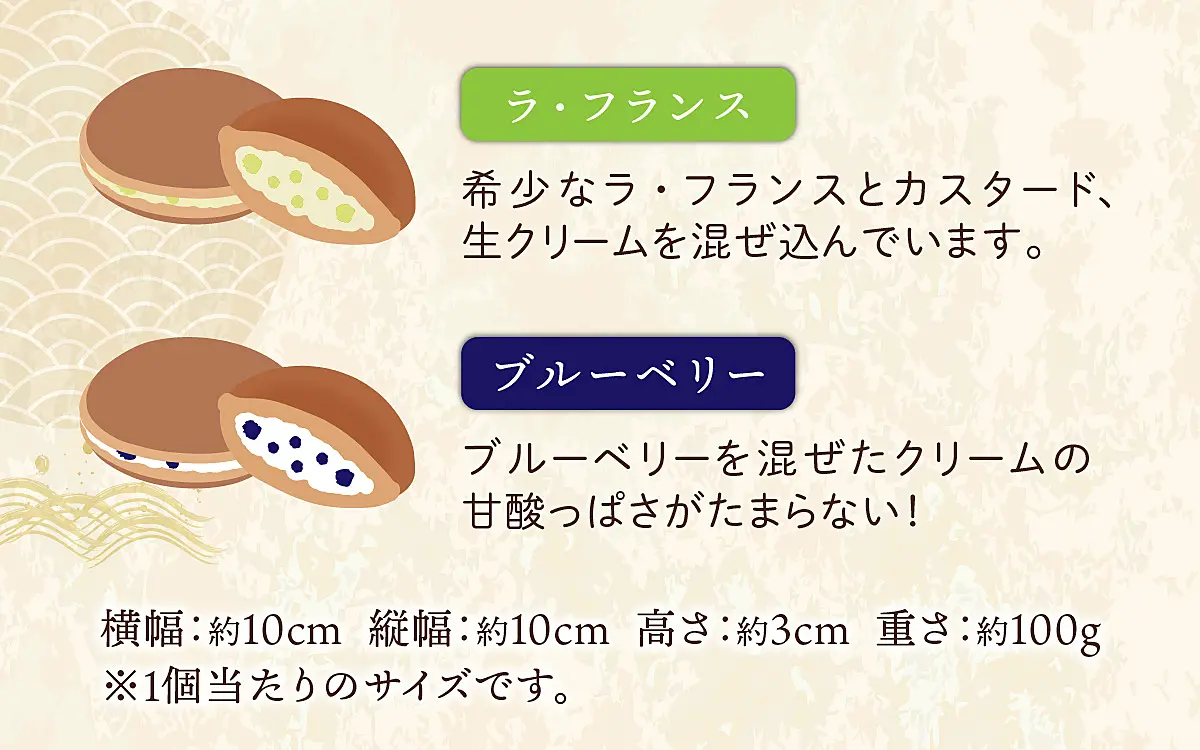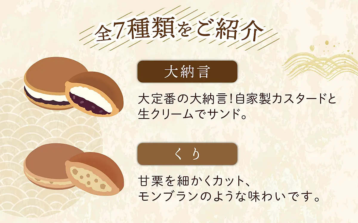 大納言や栗などの和の定番と、みかん・いちご・白桃など人気の高いフルーツ生どらをぎゅっと詰め込んだ王道セットです。