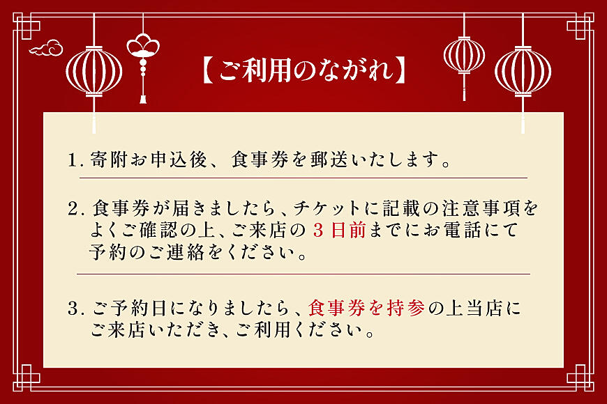 3.ご予約日になりましたら、食事券を持参の上、当店にご来店いただき、ご利用ください。