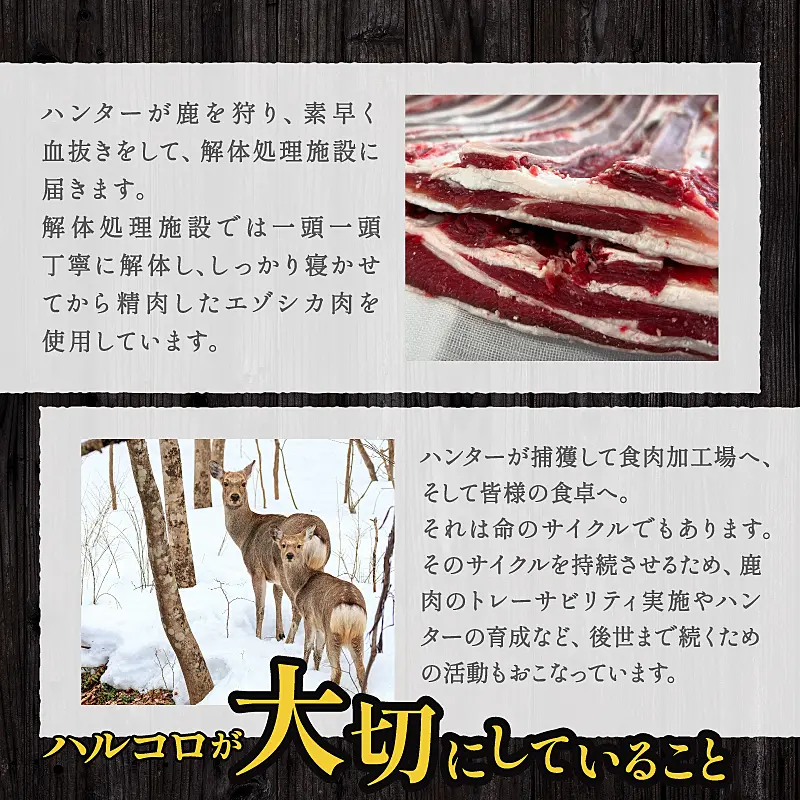 駆除されたエゾシカを廃棄するだけが解決策ではない、をモットーに利活用を推進中。