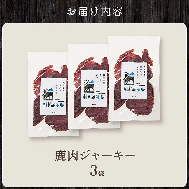 大雪山麓エゾシカシリーズ 鹿肉ジャーキー3袋セット