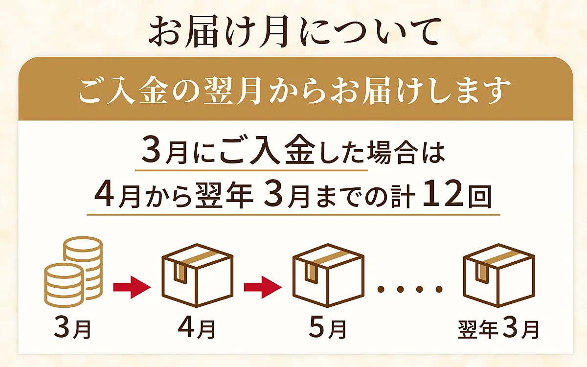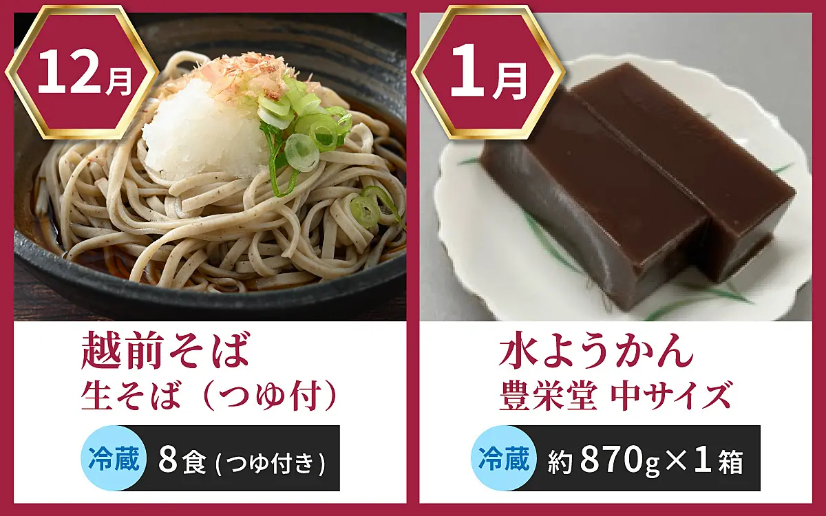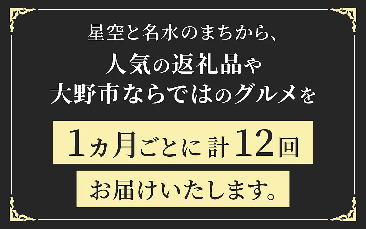 この定期便では、越前おおのの旬の味覚を、毎月1回、12か月にわたってお届けします。