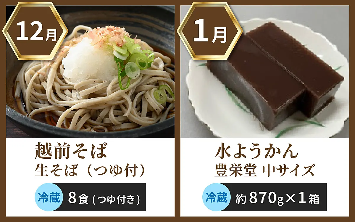 この定期便では、越前おおのの秋冬の味覚を、10月から1月まで毎月1品ずつ(全4回)お届けする特別な定期便です。