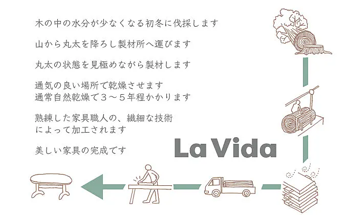 東北で育った山桜のみを使用したラ・ビーダ【三春支店】のオリジナル製品「aテーブル」です。