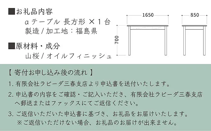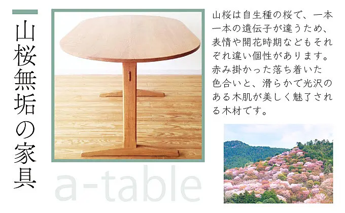東北で育った山桜のみを使用したラ・ビーダ【三春支店】のオリジナル製品「aテーブル」です。