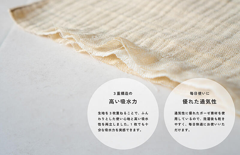 お洗濯を繰り返すとガーゼ特有の柔らかな風合いが出てきます。