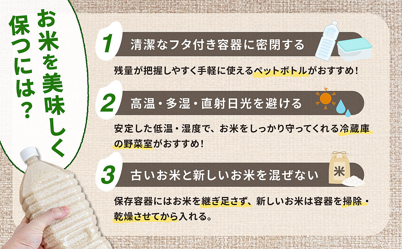 賞味期限の目安は精米から春・夏:3週間程度、秋・冬:2ヶ月程度です。