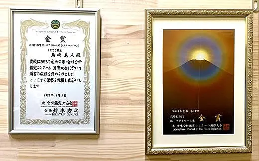 2022年第24回米・食味分析鑑定コンクールの低アミロース部門にて得票1位の金賞。