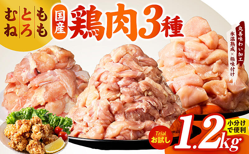 mrz0410 【氷温熟成×極味付け】国産鶏モモ・鶏とろ(肩肉)・鶏むね 3種セット 合計1.2kg