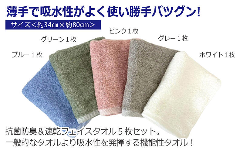 099H4457 抗菌防臭&速乾フェイスタオル5枚セット 泉州タオル