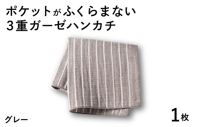 G3870 【スピード発送】ポケットがふくらまない 3重ガーゼハンカチ グレーストライプ 1枚