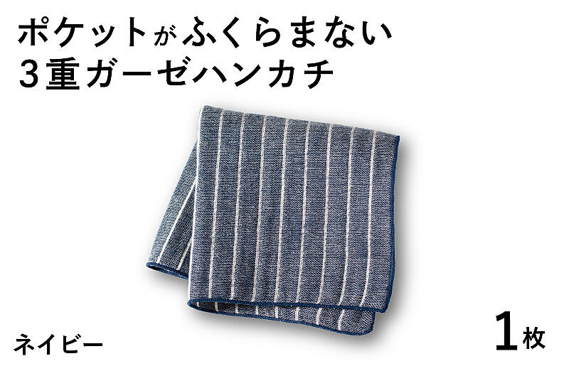 G3871 【スピード発送】ポケットがふくらまない 3重ガーゼハンカチ ネイビーストライプ 1枚