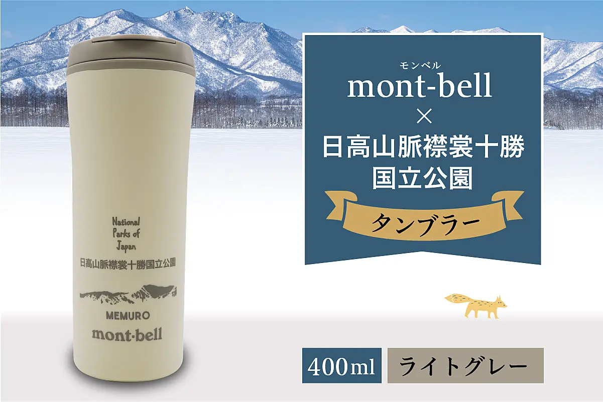 北海道十勝芽室町 モンベル製 「日高山脈襟裳十勝国立公園」記念タンブラー 400ml【ライトグレー】 me003-129c-1