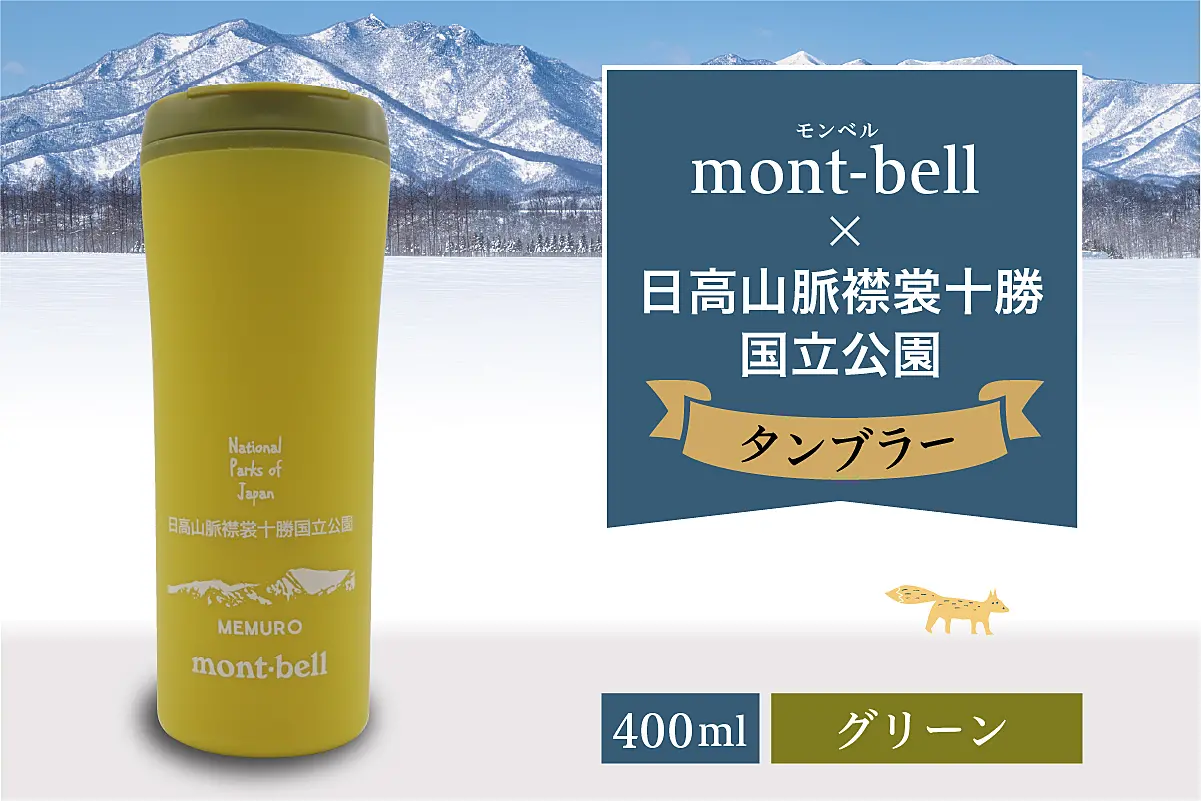 北海道十勝芽室町 モンベル製 「日高山脈襟裳十勝国立公園」記念タンブラー 400ml【グリーン】 me003-129c-4
