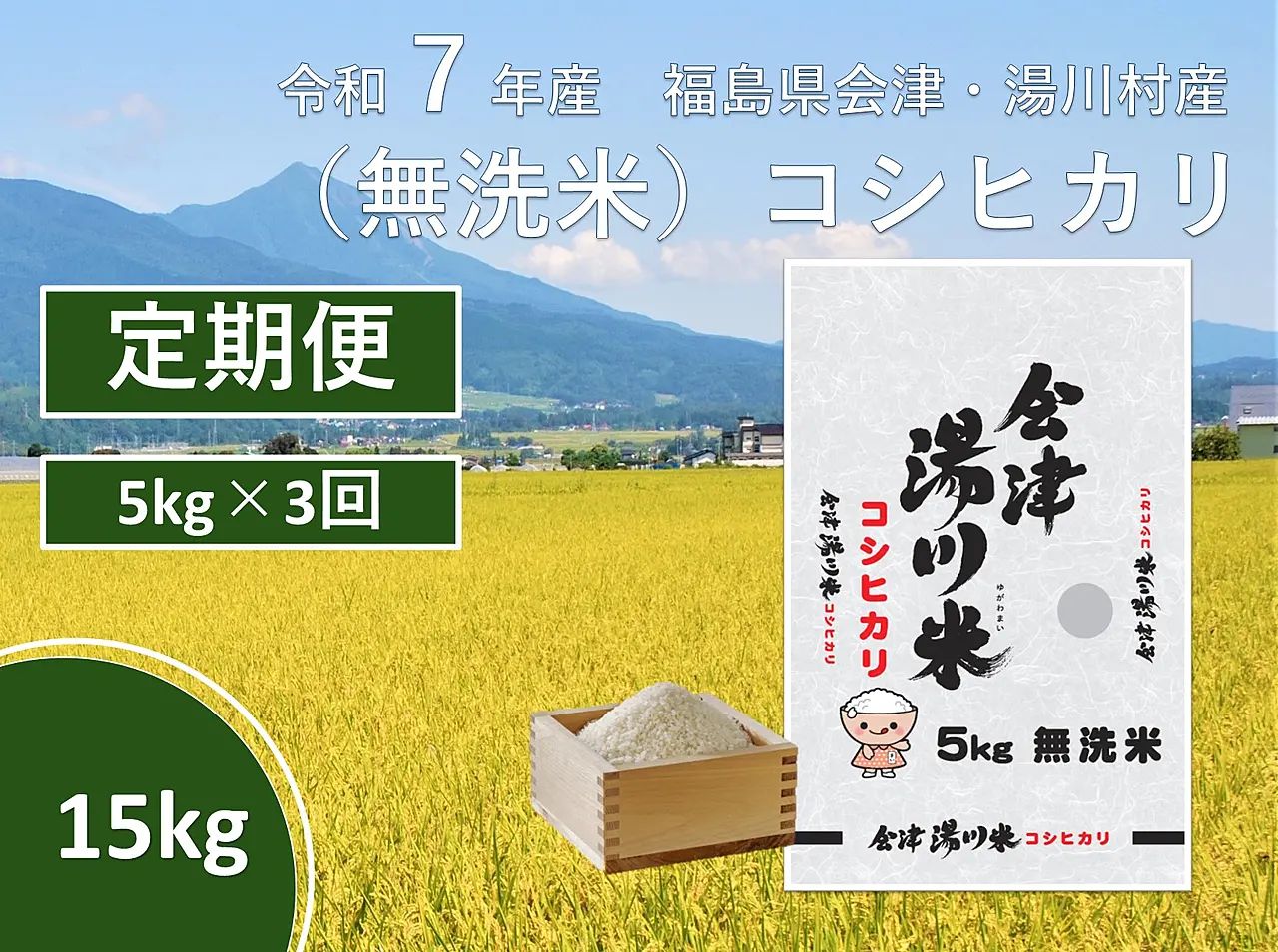 福島県湯川村 令和7年産湯川村産コシヒカリ 無洗米15kg(5㎏×3回)【全3回定期便 R8.1月・3月・5月発送】 45,000